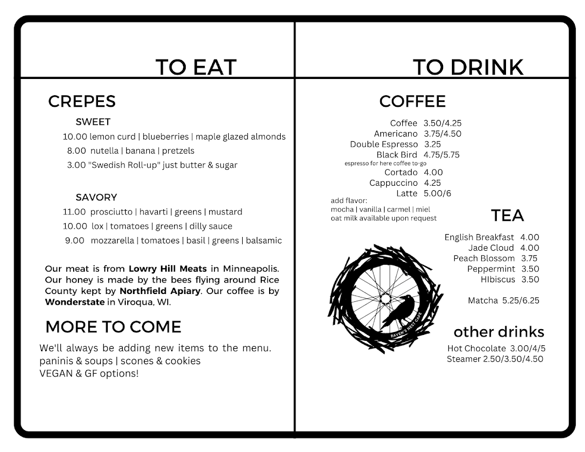 Nestled at 422 Division St S in Northfield, MN, Raven's Nest Cafe invites you to indulge in a delightful culinary escape where the aroma of freshly brewed coffee mingles with the enticing smell of crepes made right before your eyes. This charming cafe has quickly become a local favorite, and it’s not hard to see why.